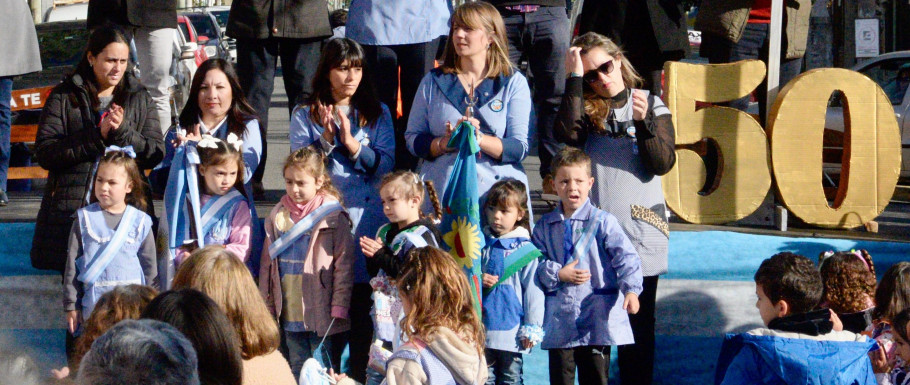 La directora Valeria Desposito, exalumna del jardín, emocionó a todos con sus palabras: "Cumplir 50 años es un hito. Este jardín ha creado lazos, amistades y recuerdos imborrables. Es un honor liderar este proyecto con tanto corazón".