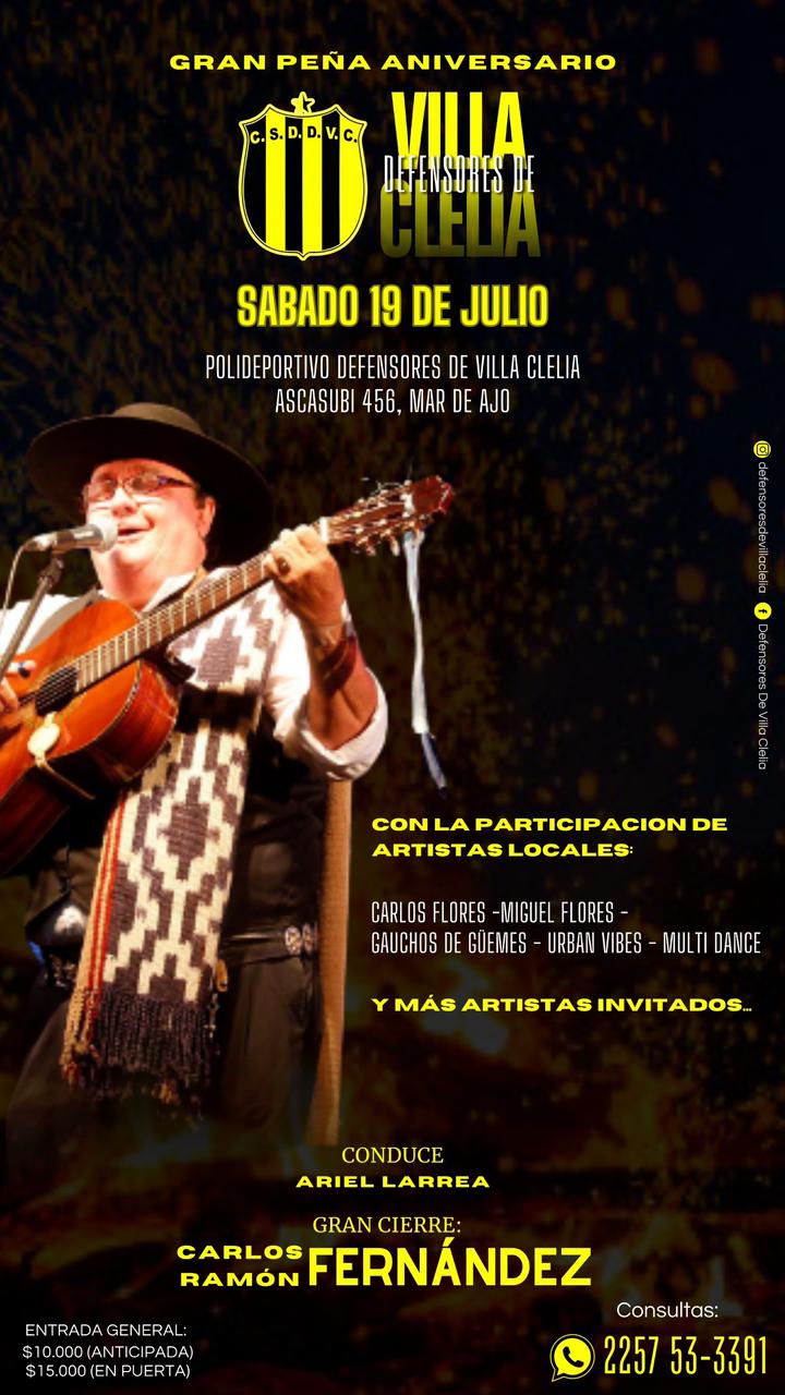Aunque el aniversario oficial es el 12 de julio, la celebración se realizará el 19 para asegurar la participación de Carlos Ramón Fernández. La peña promete una noche llena de música, baile y alegría compartida., con la participación de destacados artistas locales y un gran cierre a cargo del reconocido cantor.