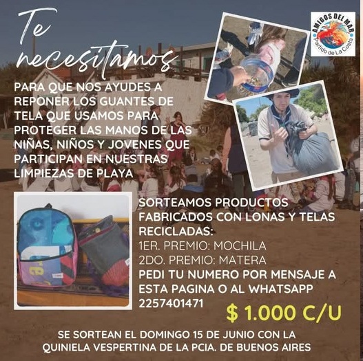 Con un sorteo de una mochila ecológica y un bolso matero, se busca recaudar fondos para equipar a jóvenes voluntarios que limpian las playas de Mar de Ajó, San Clemente y otras localidades costeras.